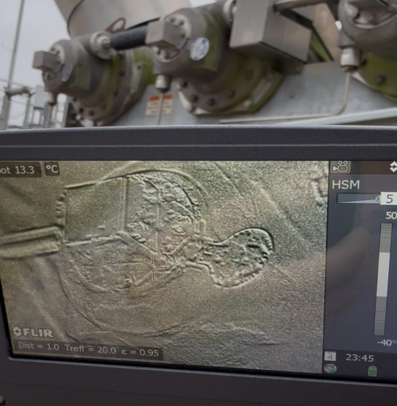 The breaker was scanned using a high-sensitivity imaging camera, which identified a leak on the A-phase pole in the vicinity of the rupture disk.