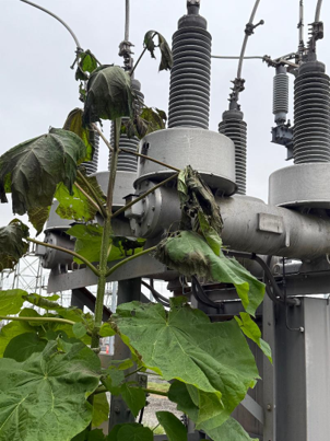 Upon arrival on site, it was found a large weed grew into the vicinity of the breaker, making contact with the primary. An arc flash occurred between the primary to the CT covers.